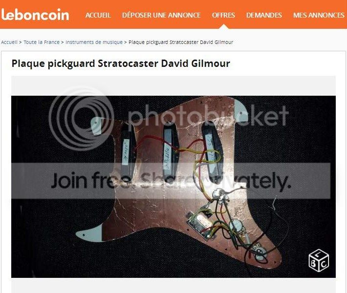 "Plaque Pickguard pour guitare modèle stratocaster cablée comme David Gilmour.