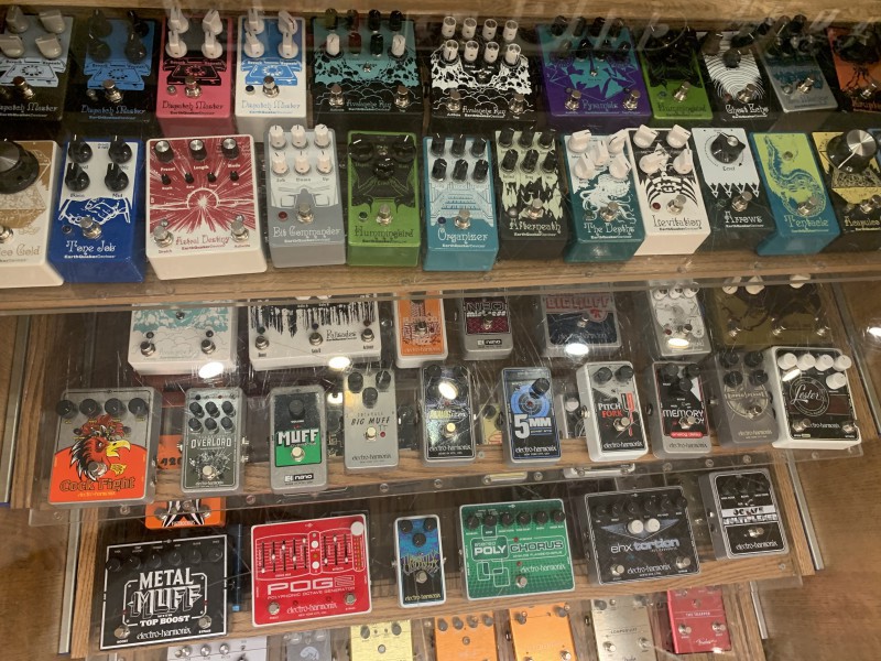 J’ai tout shooté en me disant que cela intéresserait nombre d’entre nous. Des guitares à 7k$ en libre service (mais rien de nouveau aux US finalement), du choix dans chaque marque, jusqu’au niveau de service du staff en passant par le decor, l’atelier reparation et son ambiance, le sous-sol reservé aux basses, les amplis recents ou vintage, les pedales et autres… il fallait bien tout ce temps pour apprécier, rever, essayer, et documenter.