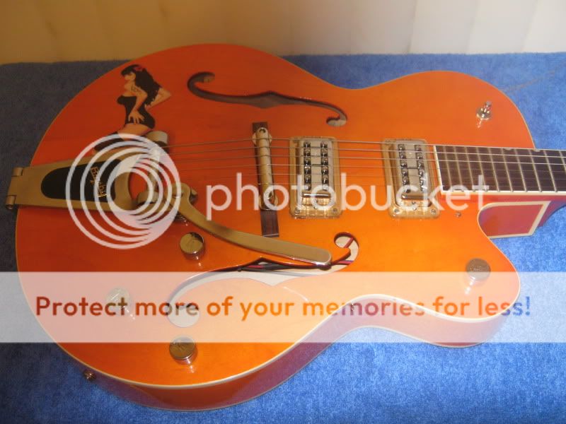 J'ai essayé de poser mon sticker sur une guitare rouge, on ne voyait presque pas la pin-up...