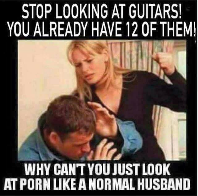 ... J'ai aussi 5 Les Paul, 2 strat, 2 super strat, une SG, un electro classique, 2 electro folk ... et une basse ... alors une gratte de plus et ma femme demande le divorce !!! : )