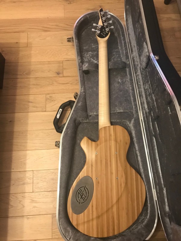 Il s'était déjà fait un petit nom depuis quelques années sur la production de ses propres guitares et il a décidé de se lancer dans un créneau particulier : faire des guitares les plus "écoresponsables" possibles. Le but étant de faire des grattes de qualité sans pour autant taper dans les bois rares, limiter l'utilisation de produits non renouvelables, etc. Cette guitare est en bambou, c'est d'ailleurs pour ça que j'ai mis une photo du dos.