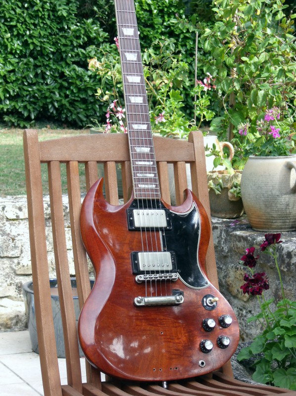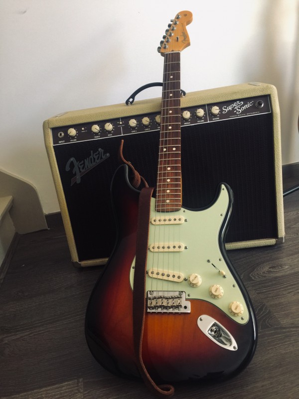 Voici un de mes joujous, c'est une Black Beauty 1989 que j'ai acheté seconde main en 1998 avec son case d'origine, à l'époque je l'avais payé 1200$. Depuis 21 ans je l'ai très peu utiliser, quelques fois en show c'est bien tout, moi j'suis comme Mr. Gilmour j'ai de grosses mains et je préfère les manches de Strat, si n'aurait été de sa beauté et que cette guitare possède un son et un sustain incroyable, je l'aurais déjà vendu, mais j'en suis incapable En fait la seule condition qui pourrait me convaincre serait qu'on me propose un échange avec une superbe vieille Strat!
