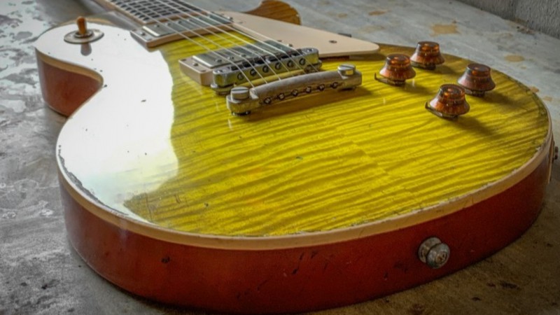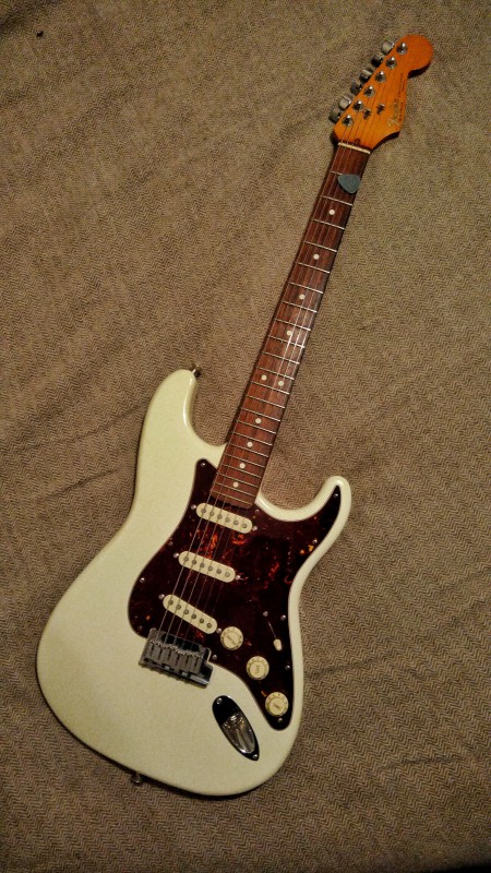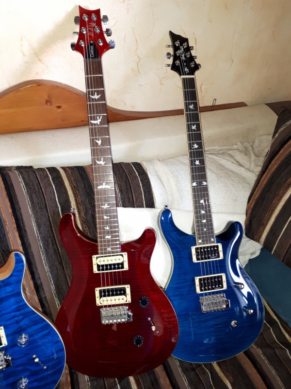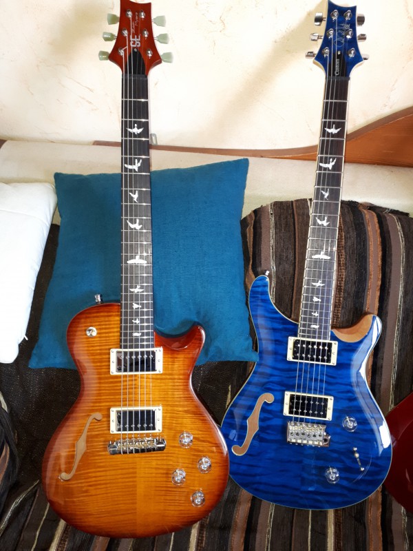 Electric' : FENDER Telecaster CIJ Reissue 62 "Olympic White", FENDER Stratocaster Player Series "Butter Cream", GRETSCH G2622T, GIBSON Les Paul Tribute 2019 "Honeyburst", GUILD S-200 P90, HB Esquire DIY, HB JA 60 « Shell pink »