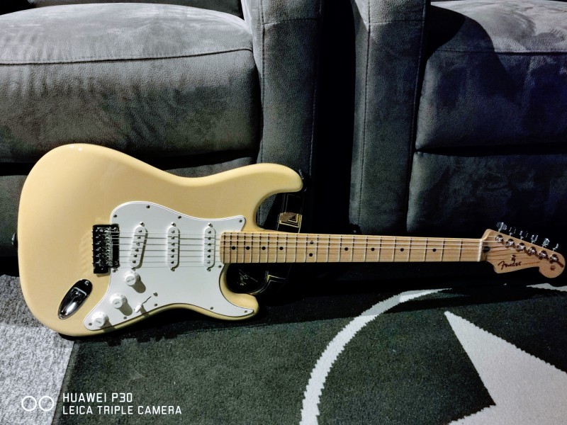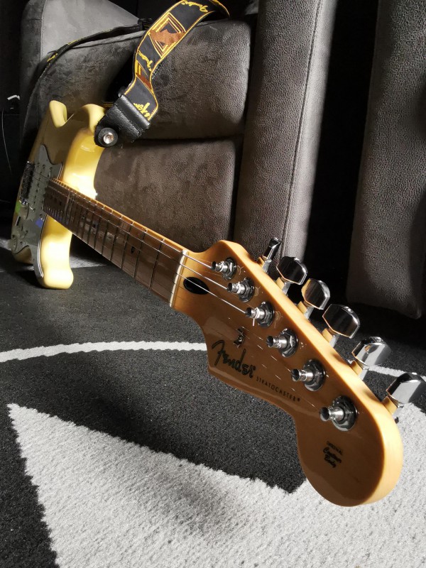 Pour le fun 2 photos de ma Stratocaster que je joue de plus en plus (je ne suis pas un fan de Strat mais plus je la joue plus j’aime la jouer).