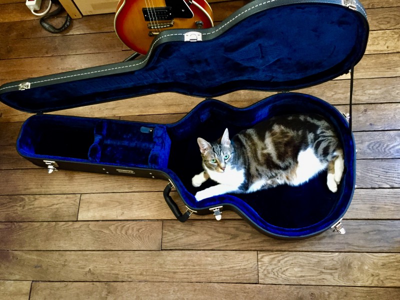 * Peut-être est-ce dû à mon enfance des années 70, ma marraine m'avait offert une jouet-guitare électrique "exactement comme la tienne" mais en rouge-vif, je l'ai démolie en quelques jours ...