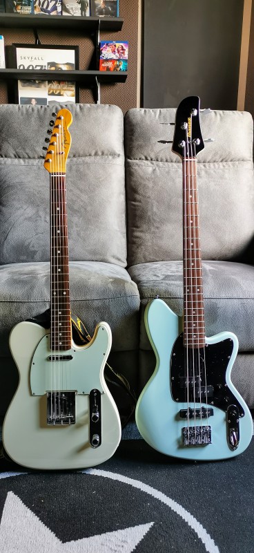 Petite photo de ma basse Ibanez Talman shortscale pour comparer sa dimension avec ma Telecaster. Pas perdu du coup...