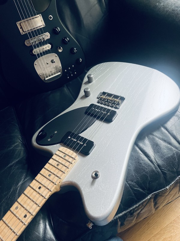 Bizarrement, parfois la forme de la strat me paraît avoir pris "un coup de vieux" surtout dans la teinte sunburst, alors que là, je la trouve moderne, sûrement en raison d'une forme différente et particulièrement réussie, mais aussi en raison de cette peinture extrêmement brillante, et des micros qui existent pourtant depuis pas mal d'années, mais qui viennent apporter une touche de modernité au milieu d'un corps rutilant, tout comme les boutons, bref vraiment l'impression d'une bass ultra-moderne!