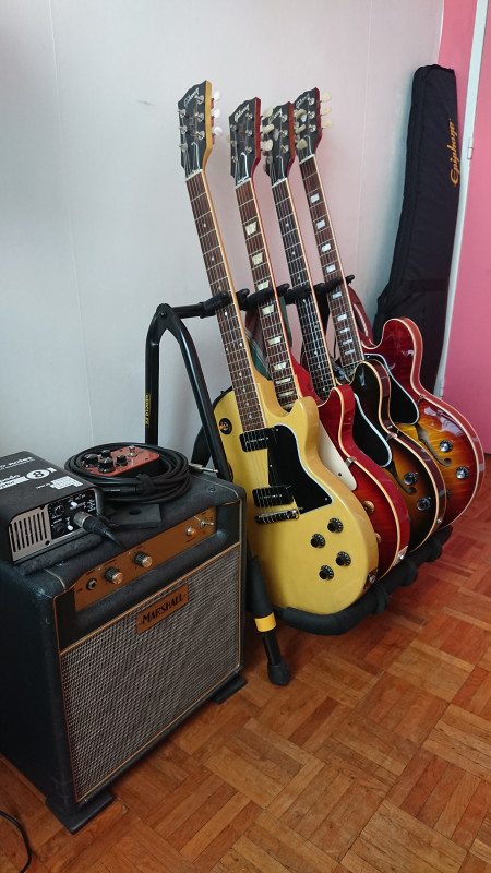 Basses : G&L USA : L1000 + SB2 ; Fender Précision Bass Spécial deluxe & Taylor GS mini.
