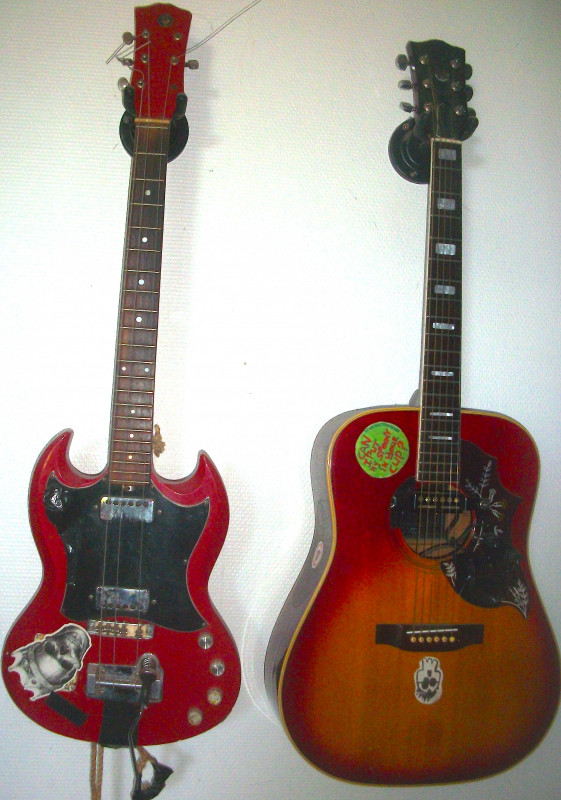 Electric' : FENDER Telecaster CIJ Reissue 62 "Olympic White", FENDER Stratocaster Player Series "Butter Cream", GRETSCH G2622T, GIBSON Les Paul Tribute 2019 "Honeyburst", GUILD S-200 P90, HB Esquire DIY, HB JA 60 « Shell pink »