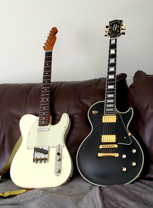 Je me suis permi de changer les mécaniques pour des mécaniques en Snakewood et un cache Truss rod en Cocobolo. Ca lui va pas mal je trouve.