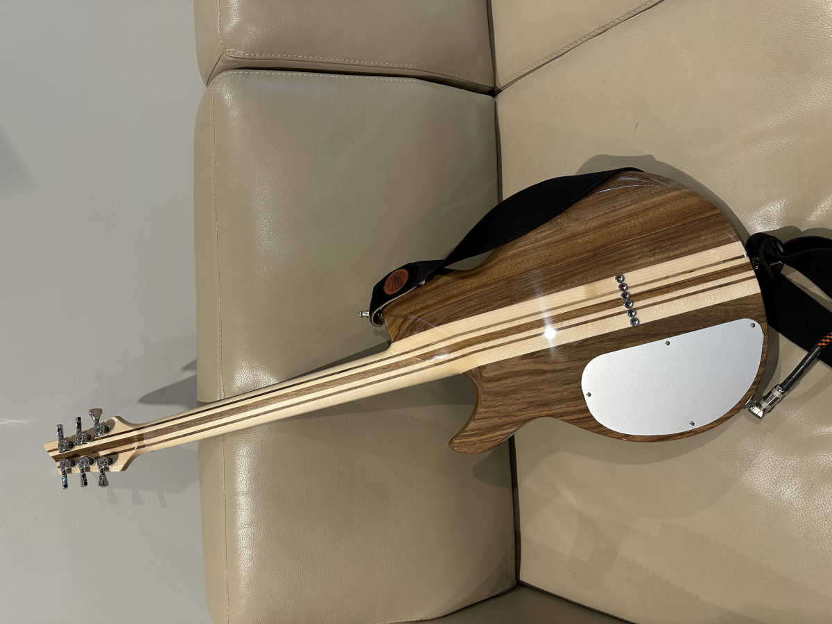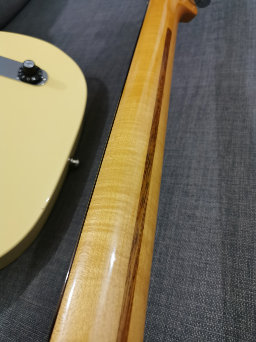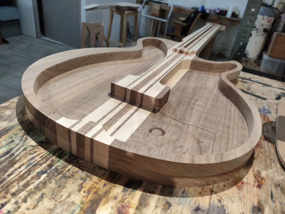 Pour les autres specs: bois essentiellement locaux (noyer & érable sycomore), touche ébène, manche traversant. Pour l'électronique, ma config préférée que j'ai sur mes 3 guitare de luthier: 2 micros, 1 volume par micro, 1 tonalité générale et un switch 3 position.
