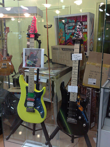 Guitare Gam, l'acceuil en client VIP café, tour du propriétaire et salle d'ampli à disposition. La Leçon dont ferait bien de s'inspirer nombre de commercant. L'ambiance? 10h du mat' ouverture du samedi MAIS ATTENDEZ... là! comme en Thailande... comme un autel dédié à la prière, eclairé comme par magie... une vitrine.