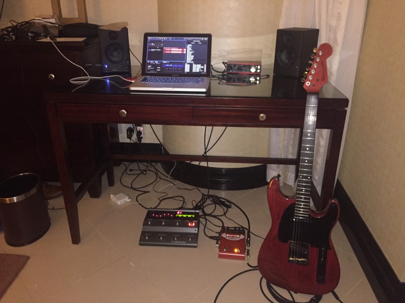 Partant du constat que je ne joue presque plus a la maison pour des tas de raisons, j'ai finalement transféré mon coin guitare au Qatar ou je vis un mois sur 2.
