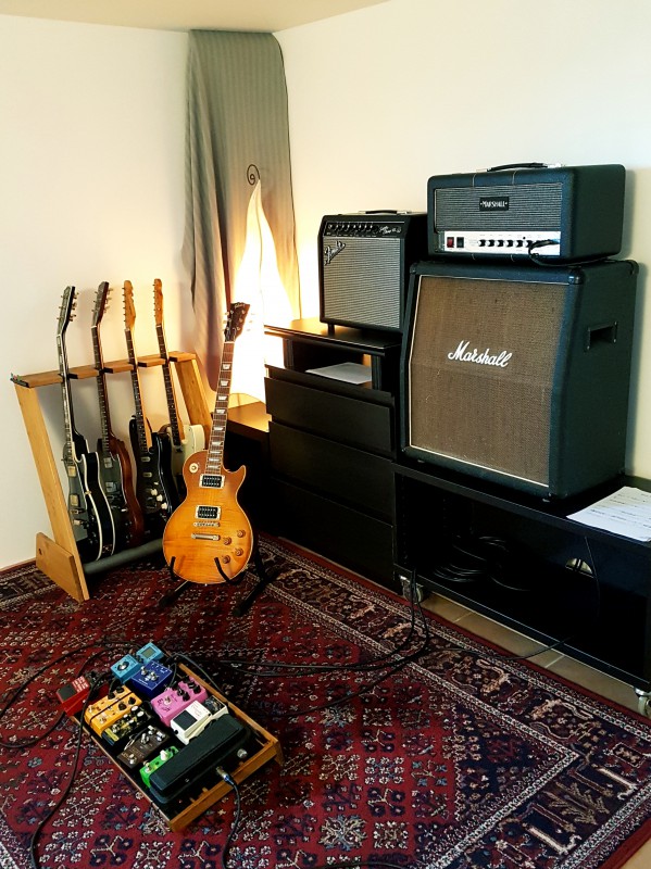Je cherchais un stand qui permettait de mettre les guitares le plus droit possible, et celui ci est le seul que j’ai trouvé qui n’était pas trop moche, assez discret et qui me permettait de faire ça... le tout en étant disponible chez Thomann car je devais commander des pièces qu’ils avaient en stock.