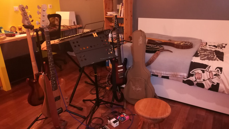 Je trouvais que l'idée de mettre toutes mes grattes dans une sorte de vitrine sur mesure pouvait être sympa => ça te permet de les voir au quotidien sans qu'elles prennent la poussière. Ca permet aussi de les verrouiller pour éviter qu'un pote avec un coup dans le nez ou un enfant fasse n'importe quoi si t'es pas dans la même pièce par exemple.