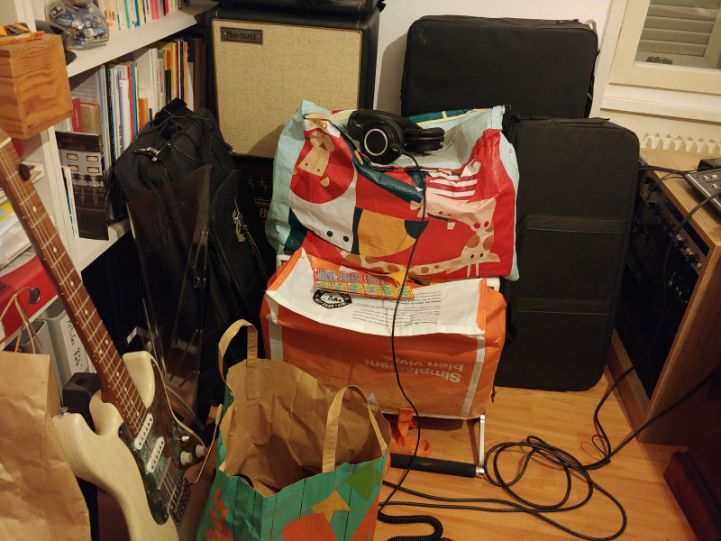Quand je me souviens de mon tout premier coin guitare dans mon appart pourri d'humidité de RP avec ma nana de l'époque (qui pétait un câble dès que je prenais la guitare en main... Espèce de tarée), je suis plutôt content. Je joue toujours aussi mal, mais au moins je joue dans le confort
