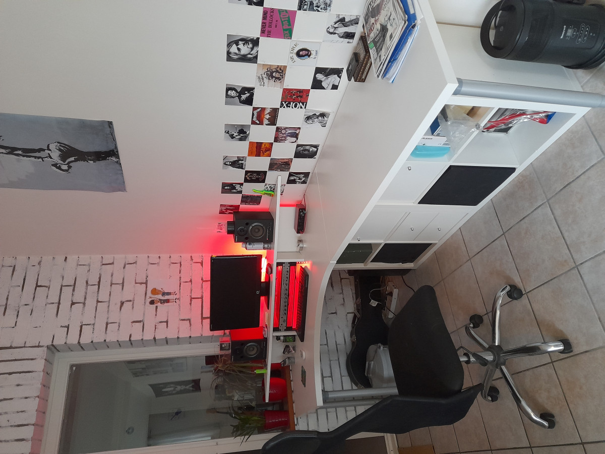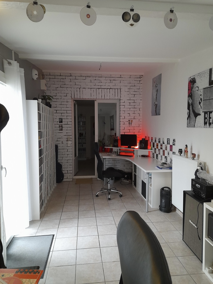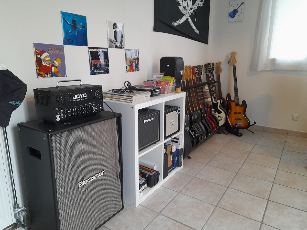 C'est chouette ! avec une belle collection de guitares. Sympa aussi la déco avec les pochettes de CDs
