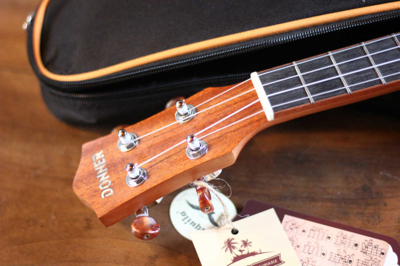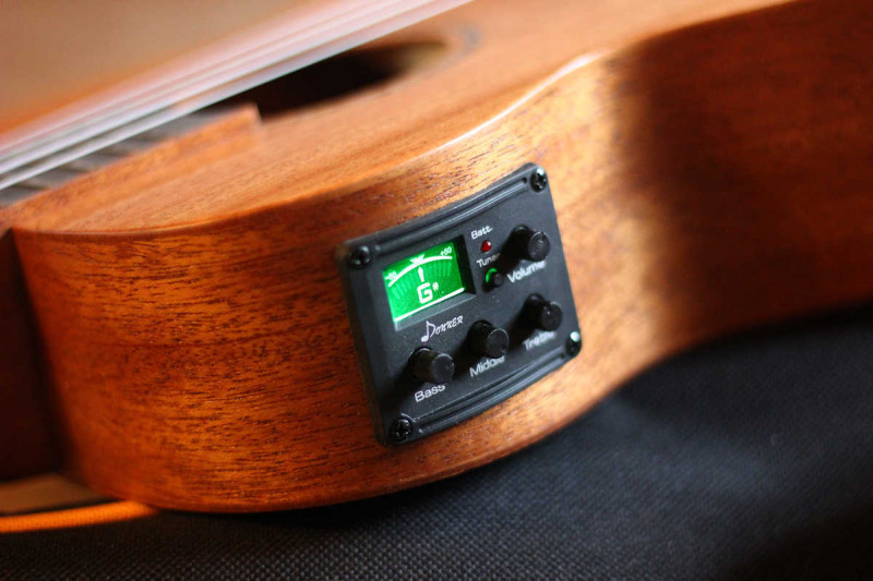 J'avoue que c'est une très bonne surprise : La table a vraiment l'air massive, les cordes Aquila n'ont pas besoin d'être changées de suite (même si un autre jeu de cordes est fourni), la housse n'est pas juste un morceau de toile fine, l'accordeur intégré est super pratique, la finition est propre et surtout, il sonne franchement bien (même si mon expérience se résume à mon Lâg et à quelques entrées de gamme Harley Benton et Music Store) : C'est assez rond, chaleureux, et ça projette bien.