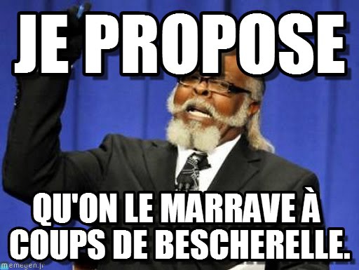 Tu veux que j'ail déposé plaintes ? C'est ce que je ferais à votre forum , je suis venu à chaque fois pour demandé des avis constructif et non ce que j'ai souvent en retour c'est des commentaires un peu méchant enfin de la moquerie gratuite surtout alors que les autres en ont pas