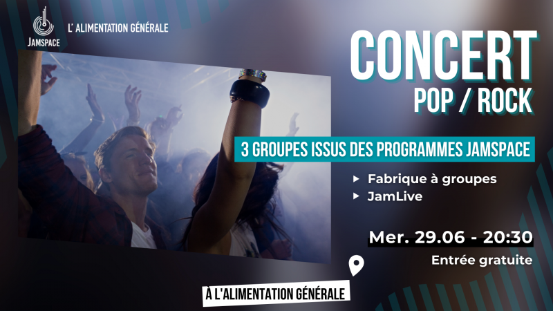 Au menu de la soirée ; deux groupes Jam Live et un Jam Acadamy formés et accompagnés par nos coachs ! Ils interpréteront un répertoire principalement pop et rock, alors, on vient découvrir les futures stars de demain ?