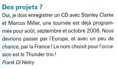 bon...ca va être de la branlette, j'aime bien ce qu'ils font séparément, mais la ça va être un G3 (Vaï + Satriani + un 3° gratteux) du jazz quoi... ce qui pourrait être bien c'est qu'ils soient entourés d'autres zicos, et que ça ressemble au "live in America" de Wooten (Miller entre autres faisait une apparition).