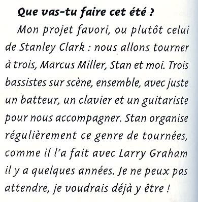 J'avais récupéré en p2p une vidéo extraite de la tournée de larry graham avec Stanley Clark, et ils ont school days, c'était de la musique, par contre je trouve que le jeu solo de Stanley Clark ne raconte pas grand chose.