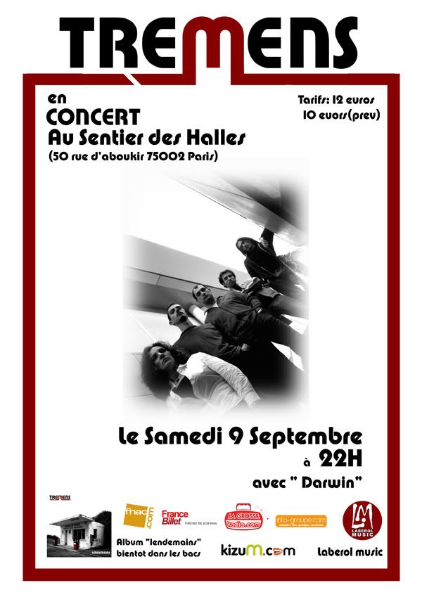 DOCTOR D Vintage Cool utilisateur #1 Publié par DOCTOR D le 03 Sep 2006, 19:50 Hello les Amigos, concert rock français qui remue au Sentier des Halles samedi soir prochain, a partir de 22 H 00 Avec Darwin en premiere partie : super groupe de pop rock avec Tanguy a la basse (Eric Berger l'acteur de ce film culte) "MAY THE RIFF BE WITH YOU" http://www.Tremens.fr