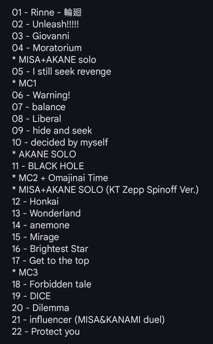 Aujourd'hui c'était FUKUOKA (encore un concert spin off - donc où elles jouent pas mal de titres "rares" ou moins joués) - la setlist de malade