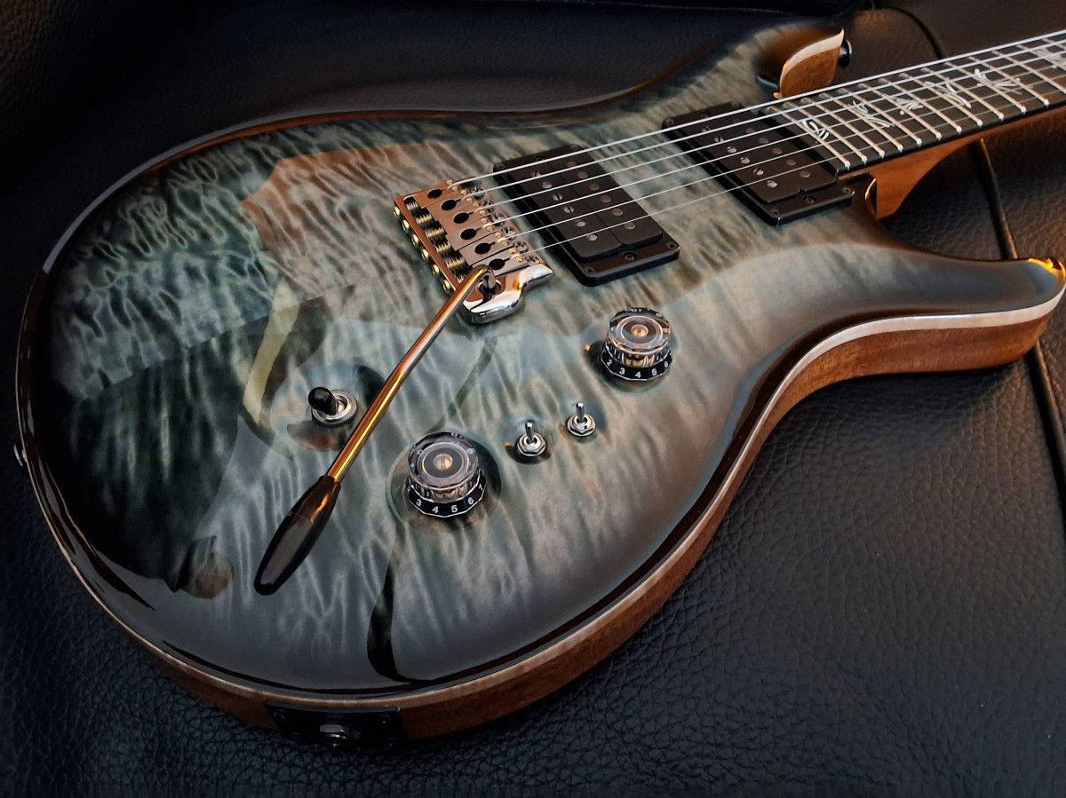 . J'ai décidé de d'abord la brancher dans mon Fender Deluxe Reverb - pas le premier ampli auquel on penserait pour une telle guitare, mais je voulais vraiment l'entendre en clair d'abord pour juger. Un vrai piano! les notes ont cette clarté, ce corps et ce sustain, que je connaissais déjà un peu sur mes autres PRS US, mais pas à ce point, tout est magnifié.