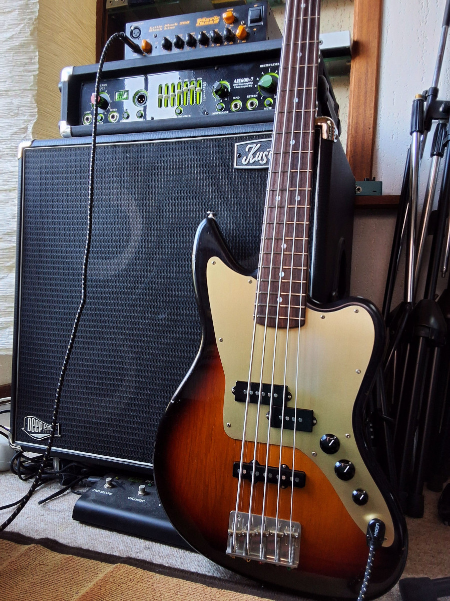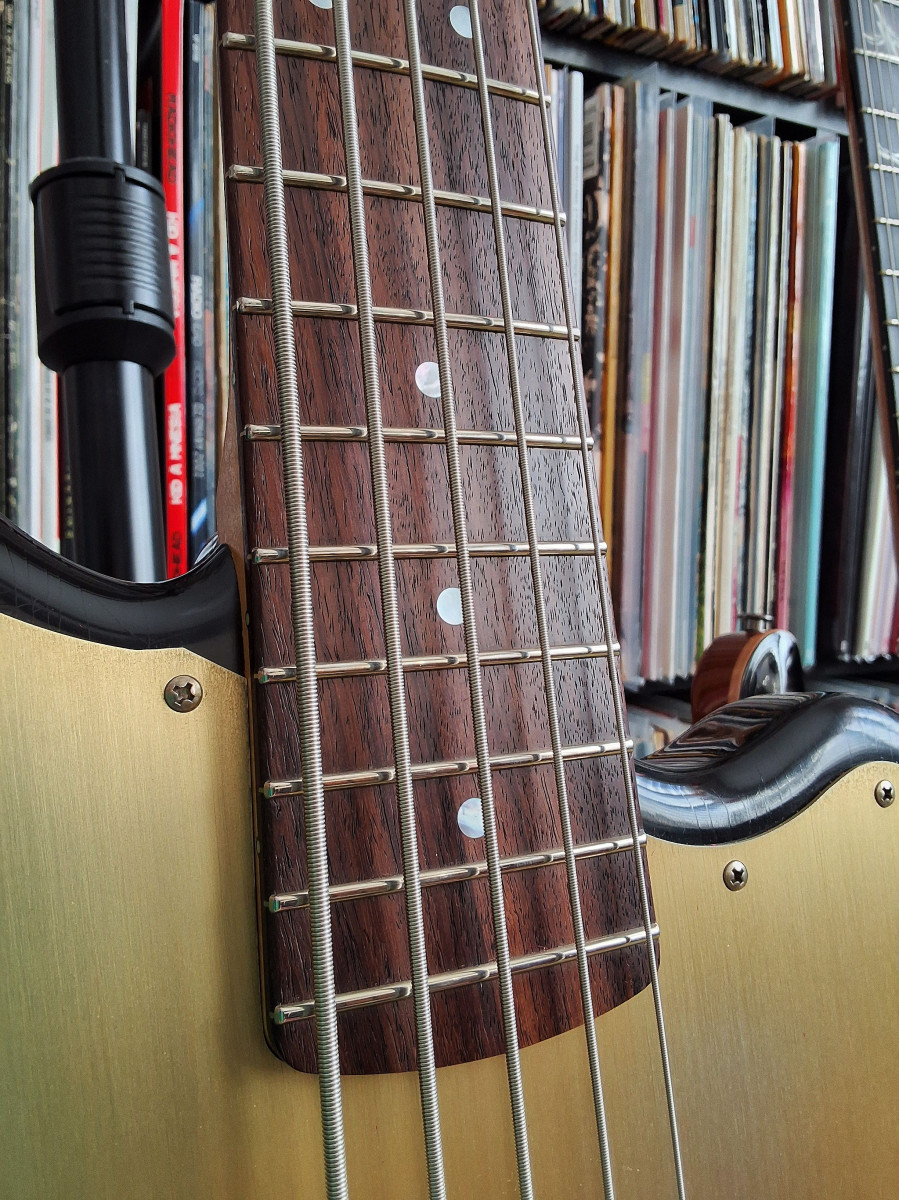 Elle est super agréable à jouer malgré la largeur de manche liée au fait que c'est une 5-cordes (je ne suis pas tout à fait étranger aux 5-cordes, j'ai une vieille fretless active qui traîne), pas du tout fatigante (mais penche un poil vers la tête quand même - pas de problème avec une bonne sangle). Les potards sont excellents et l'électronique super propre. Dans le passé, j'ai souvent trouvé que les micros japonais étaient un peu "lisses", ce n'est pas du tout le cas ici, plein de personnalité