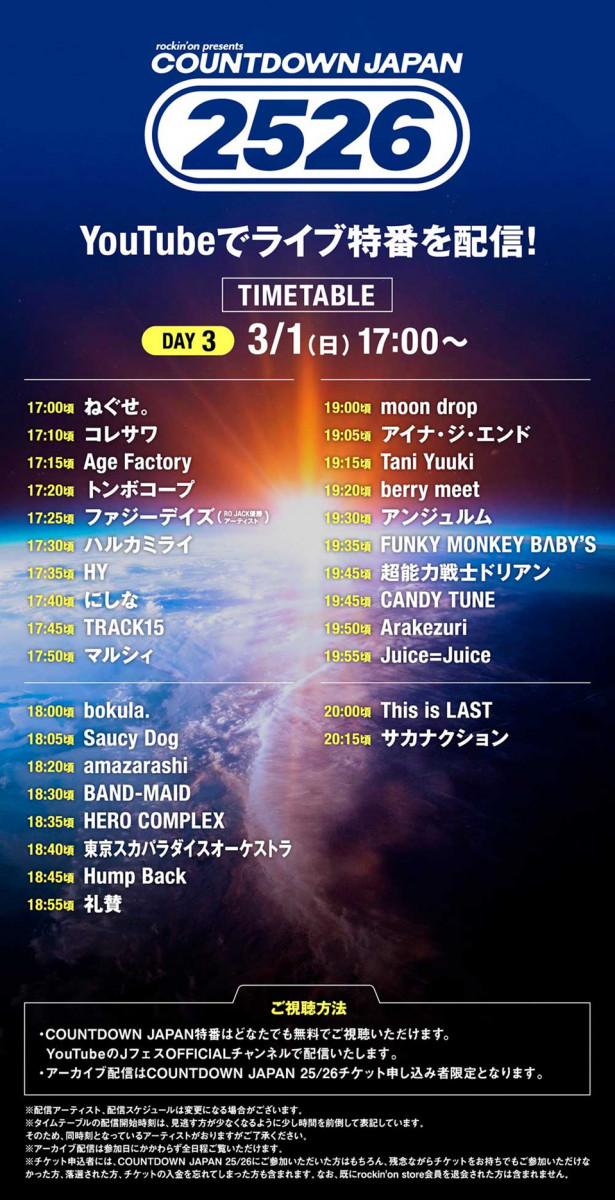 En principe, le concert de Band-Maid au festival COUNTDOWN JAPAN sera diffusé le dimanche 1er mars.