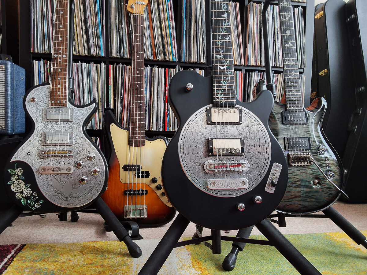 Mais il y'a de l'espoir - en fait, cette passion assez récente de Saiki pour le clavier (2021) coïncide avec la sortie de la première guitare signature Band-Maid, la Flappy Pigeon de Miku. N'y voyez aucun hasard, en fait le but ultime est simplement d'avoir SON synthé signature un jour .