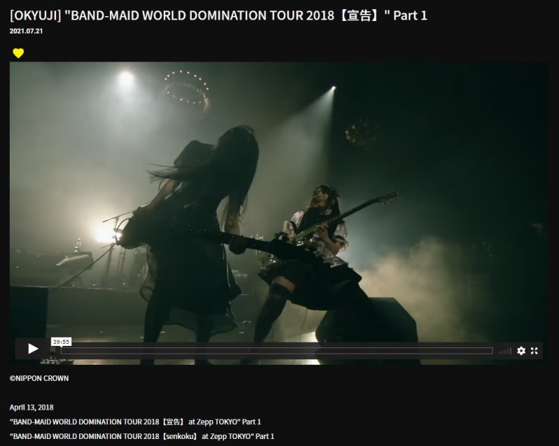 - sur PRIME (leur plateforme payante), elles ont mis à disposition un concert qui à l'origine venait en bonus du CD de World Domination (je l'ai, mais il est introuvable depuis un bon moment) et rien que celà justifierait le prix d'admission - c'est le concert "STUDIO COAST - tournée automne hiver 2017; peut-être leur concert avec le meilleur son