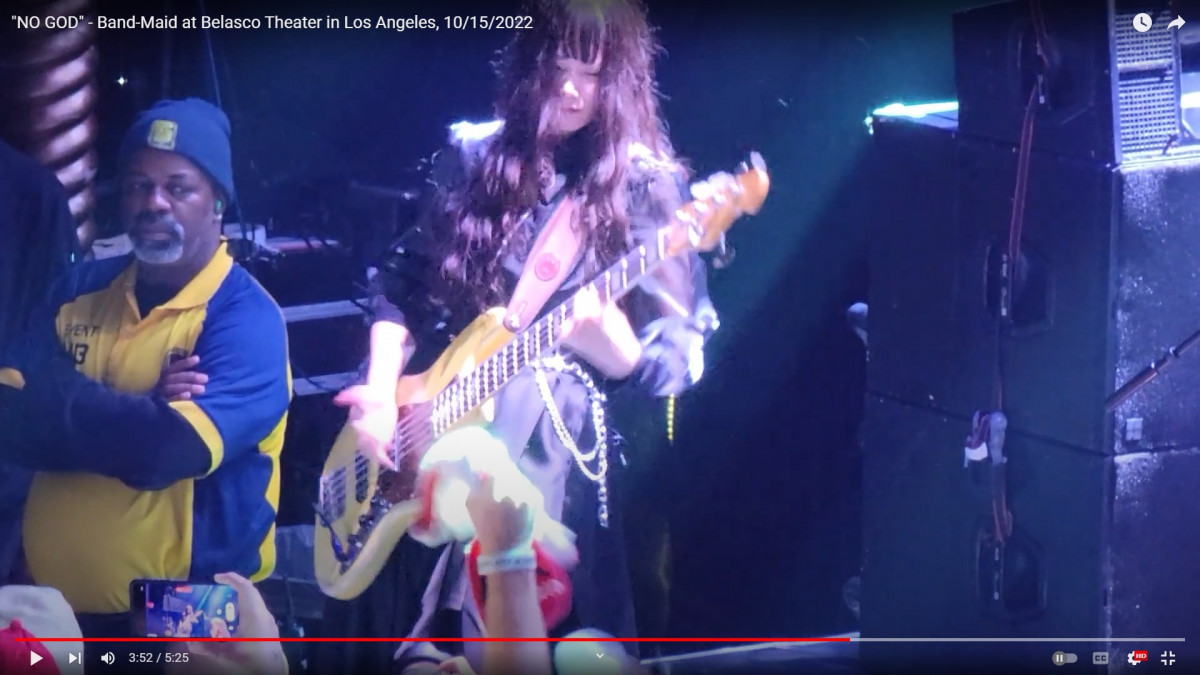 J'adore ce cliché: le security guy impassible durant tout le concert, regard fixé sur le public ... sauf lorsque Misa part en solo/slap et là il ne peut pas s'empêcher