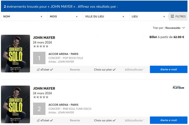C'est en venant hier sur le forum que j'ai appris avec grand bonheur la venue de John Mayer. Sur le site d'annonce, ils précisent 1ère venue en 15 ans. Ah bon, il est venu en 2009, quand, où ? J'ai manqué cet épisode.