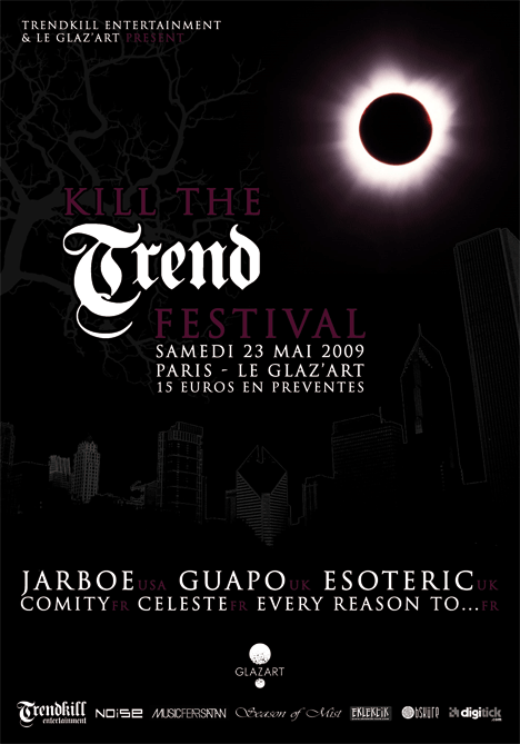 Nameless Noise Special Cool utilisateur #1 Publié par Nameless Noise le 26 Avr 2009, 19:51 Ça sera donc le samedi 23 mai de 15h à 22h, au Glaz'Art à Paris ! Esoteric - http://www.myspace.com/esotericuk Jarboe - http://www.myspace.com/jarboeliving Guapo - http://www.myspace.com/guapoband Comity - http://www.myspace.com/comity Celeste - http://www.myspace.com/unhiverdeplus Every Reason To... - http://www.myspace.com/everyre(...)rocks Quelqu'un compte y aller ? L'affiche me plait beaucoup, je pense y aller.