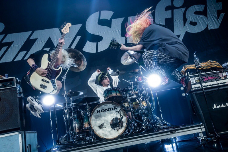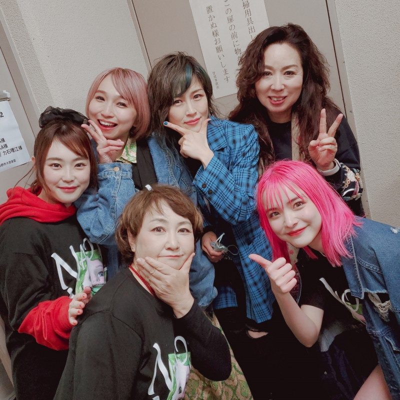 Encore une photo, cette fois Gacharic Spin (moins Oreo et Tomo-zo) avec les deux co-directrices de la Tokyo School of Music, aka Atsuko et Kyoko, section rythmique de Princess Princess. Franchement: Akane et Misa auraient dû être là avec leurs anciens profs !!!