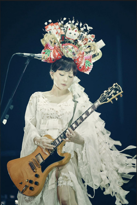 Ceci dit, je ne l'ai jamais vue sur scène avec une SG, mais principalement sa Duesenberg Starplayer à ses débuts (devenue tellement populaire au Japon à cause d'elle qu'elle a donné un solide coup de boost à la marque - certains disent même que sans elle la marque n'aurait jamais décollé ... ) et bien sûr la fabuleuse Gibson RD artist qu'elle arborait encore cette année en tournée: