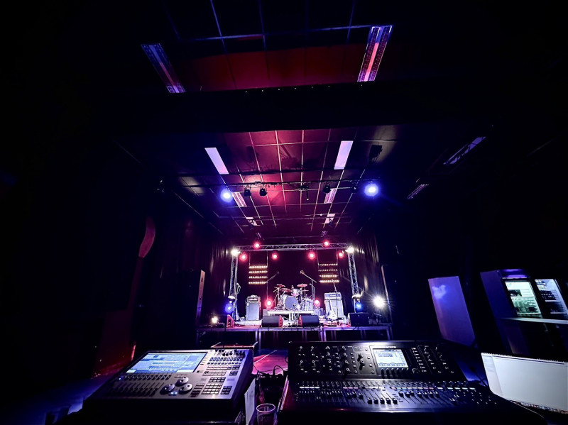 Petite salle sympa l'Atelier Rock à Huy (qui, comme son nom l'indique, est aussi une école de musique), pas soldout mais bien remplie quand même pour la dernière date de la tournée, 70-80 personnes de tous âges et tous styles, des habitués du Jrock et des curieux. Deux jours avant, à Breda, ils devaient être 40 grand maximum, donc on a fait mieux - pas évident les premières tournées EU pour un petit groupe, sans aucune pub.