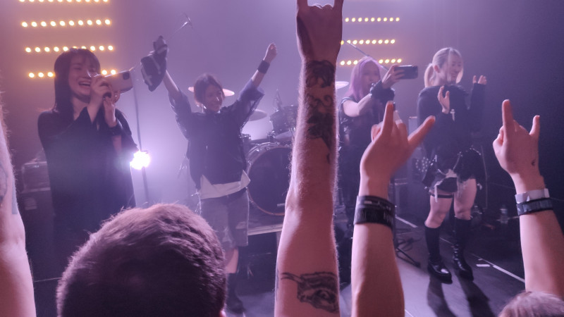 Reste Yuki: bon, elle a publié assez de vidéos solo pour qu'on sache qu'elle est une bonne batteuse et effectivement, très solide en live. Bon, sa crash était un peu violente (voir audio) mais ça m'amène à un de mes petits bémols: le volume général était trop faible à mon goût. Malheureusement, les restrictions sonores sont une réalité, et j'imagine que dans une école de musique, elles sont prises au pied de la lettre (en comparaison, Hanabie avait un excellent volume live, bien plus puissant mais pas au point d'être douloureux). Moi (au premier rang pourtant) ça m'empêche un peu de "rentrer dedans".