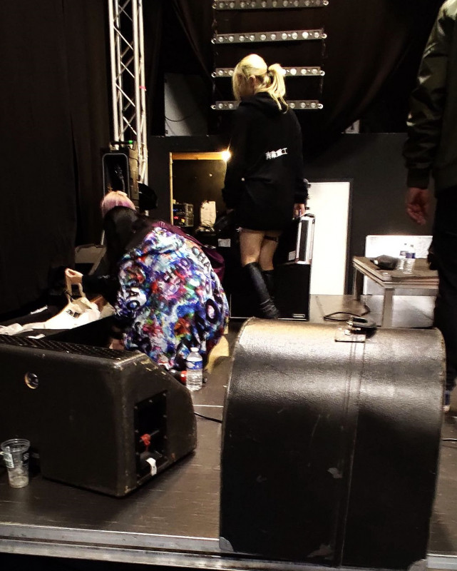 Ensuite, elles sont revenues démonter et charger le matos - aidées par le personnel de la salle pour trimballer les amplis mais sinon ce sont elles qui s'occupent de tout - petit groupe! A noter, la touche hyper-pro: elles avaient d'abord rangé leurs guitares dans un flight géant, puis les ont retirés, se sont assises sur la scène tournevis en main et se sont mises à ouvrir le logement pile pour les retirer - précaution pour le long trajet en avion et quelques jours sans les utiliser? Qaund je pense que je laisse mes piles parfois des années ...