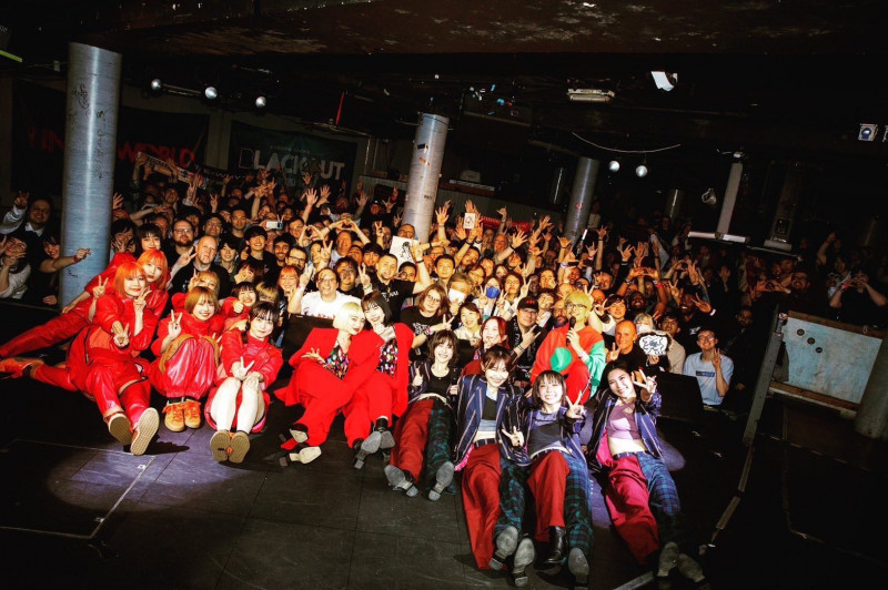 Déjà, ça fait bizarre de les voir dans un si petit endroit, eux qui ont fait les plus grandes salles avant leur hiatus. Le plafond est bas, le public est direct contre la scène. Le premier morceau commence et la voix d'Ayuni est un peu frêle et hésitante, on la sent très nerveuse. Et puis le public réagit instantanément (et n'arrêtera plus jusqu'à la fin, déchaînés, quel beau public!) et un peu avant la fin du morceau, Ayuni se tourne vers Hisako et elle a le visage d'un gosse qui vient de découvrir ses cadeux de Noël au pied du sapin - c'est juste beau et très émouvant.