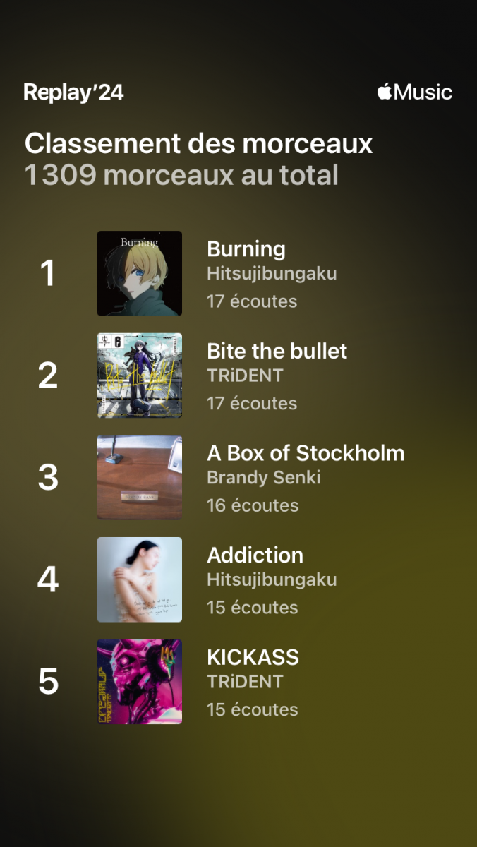 Oui je suis entièrement d’accord avec toi, la setlist est quand même "radicale" pour un concert dans une si grande salle, face à un public pas forcèment à fond dans l'alternatif... j'ai même l'impression que le groupe a pris un malin plaisir à sélectionner des titres obscurs de son répertoire, un peu par provocation... histoire de montrer que malgré le succès, les HitsujiBungaku ne tournent pas le dos à leur passé indie.