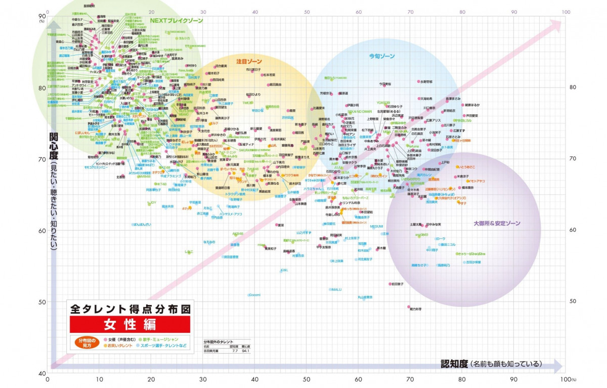 Voilà un article aussi tout intéressant qu'il est illisible: Nikkei Entertainement a sorti son classement annuel des célébrités homme est femmes.