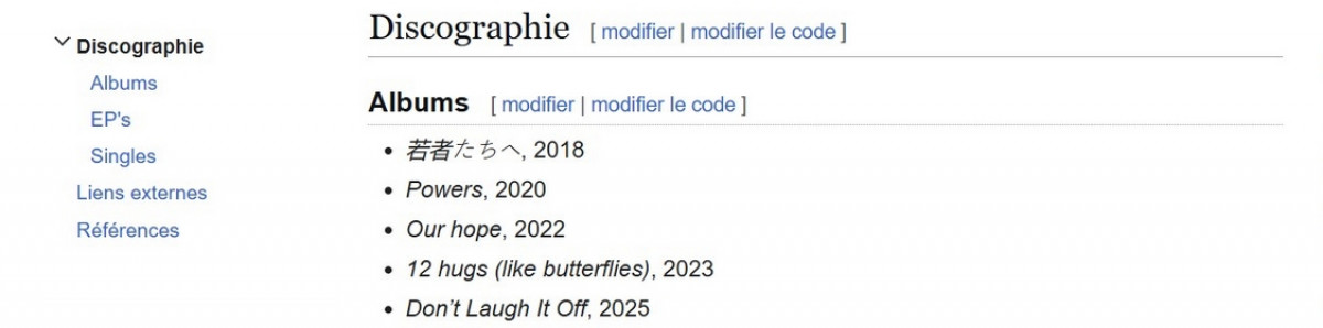 Le groupe existe depuis 2019 il me semble. Un seul album et 3 EP. Le dernier album est sortie le 26 septembre 2025.