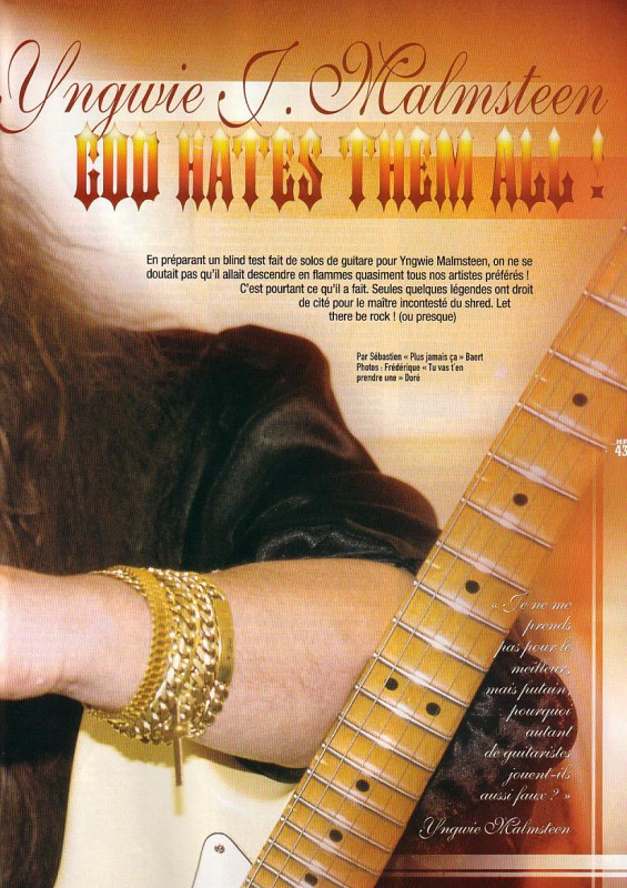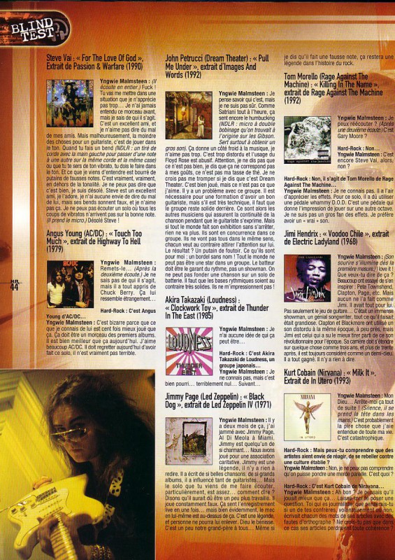 Pour rejoindre Coyote je crois, Malmsteen est un très bon instrumentiste de néoclassique, pas sur qu'il puisse jouer autre chose sincèrement, et basta. Pour moi c'est pas un grand musicien. Cobain c'est l'inverse, mauvais instrumentiste, mais grand musicien. Il a inventé un truc, ou n'aime ou pas, et a exploré des sonorités.