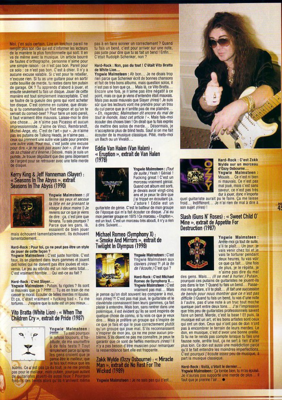 Et je ne veux pas lui faire de la peine mais il aurait beaucoup de mal à jouer dans Dream Theater par exemple. Il a du talent mais il joue le même solo depuis 40 ans, le tout inspiré de types morts il y a 250 ans, donc il est un peu mal placé pour parler musique en fait le gars...