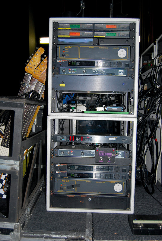 Sinon voici le stack d'ampli,voù l'on voit nettement 2 Vox déguisés, aux côtés de JCM900.