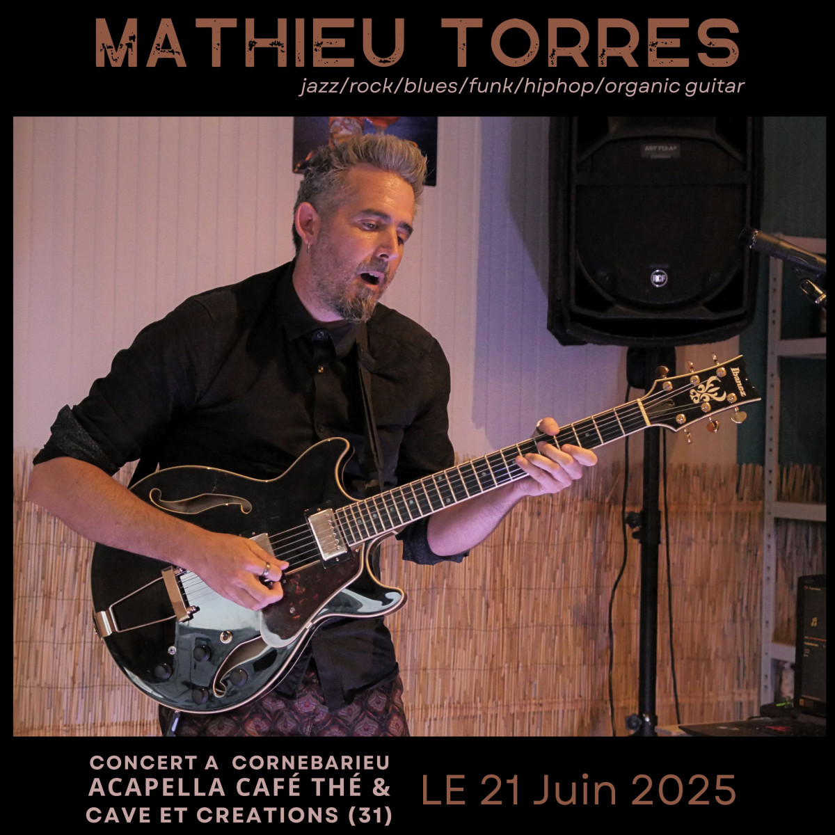 Mathieu Torres est un projet intimiste jazz - rock - blues - funk hip hop - qui jongle entre old school et modernité, porté par un son de guitare rond, vivant, chaud, organique dont l'objectif est d'arpenter des terrains cosys, calmes et poétiques.