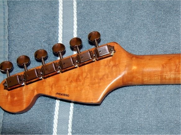 et donc mon actuelle, un peu trop Rococo à mon gout mais bon : elle a un Tom Holmes H455 en bridge et un Bare Knuckle